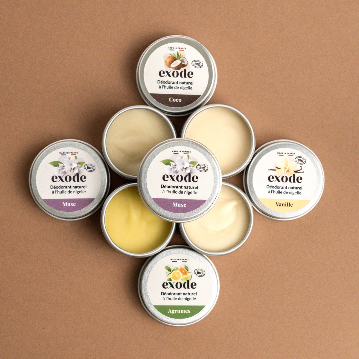 Si vous avez la peau sensible ou si vos aisselles ne supportent pas le bicarbonate de soude, nous vous recommandons notre gamme de déodorants PEAUX SENSIBLES (sans bicarbonate de soude à l’intérieur)